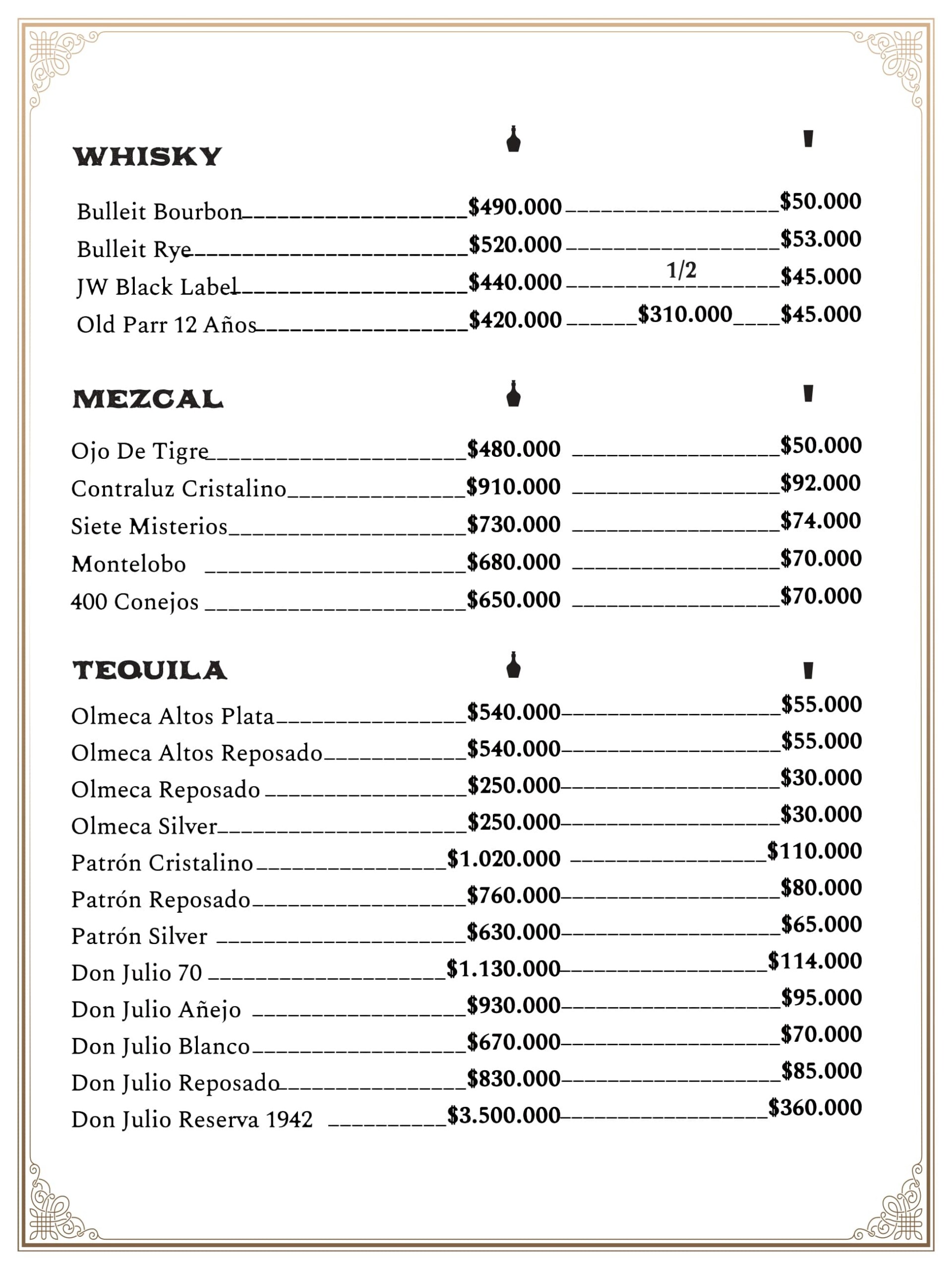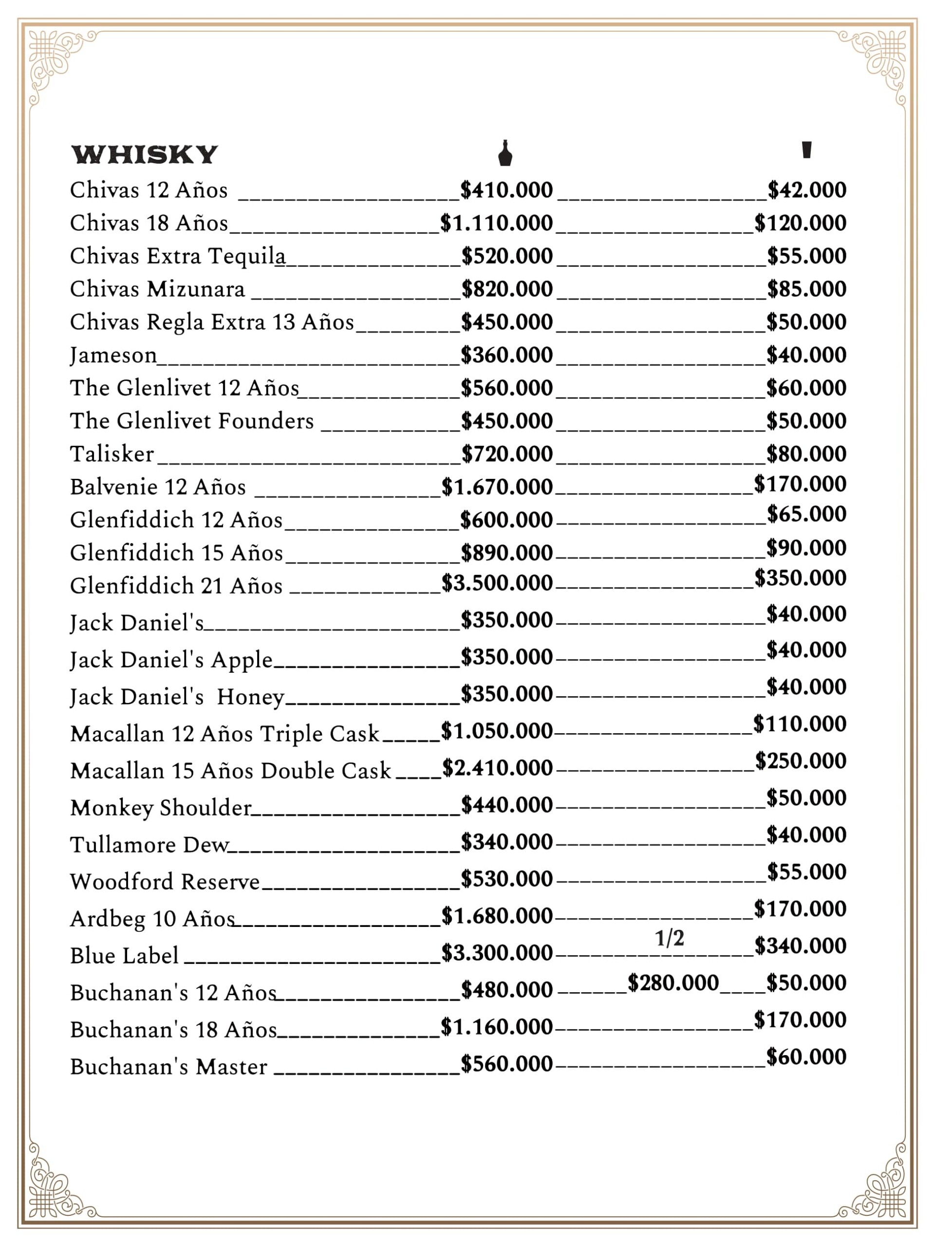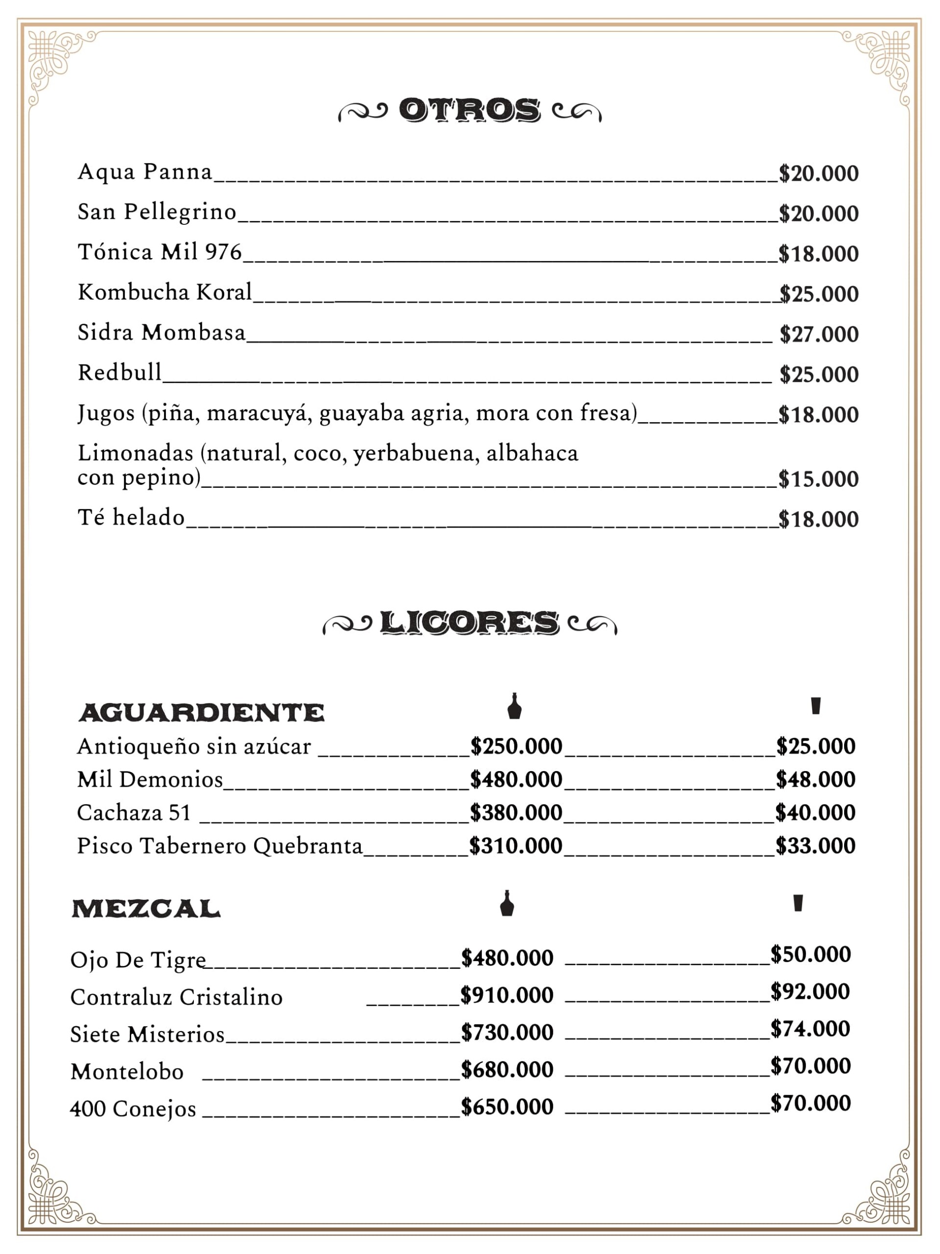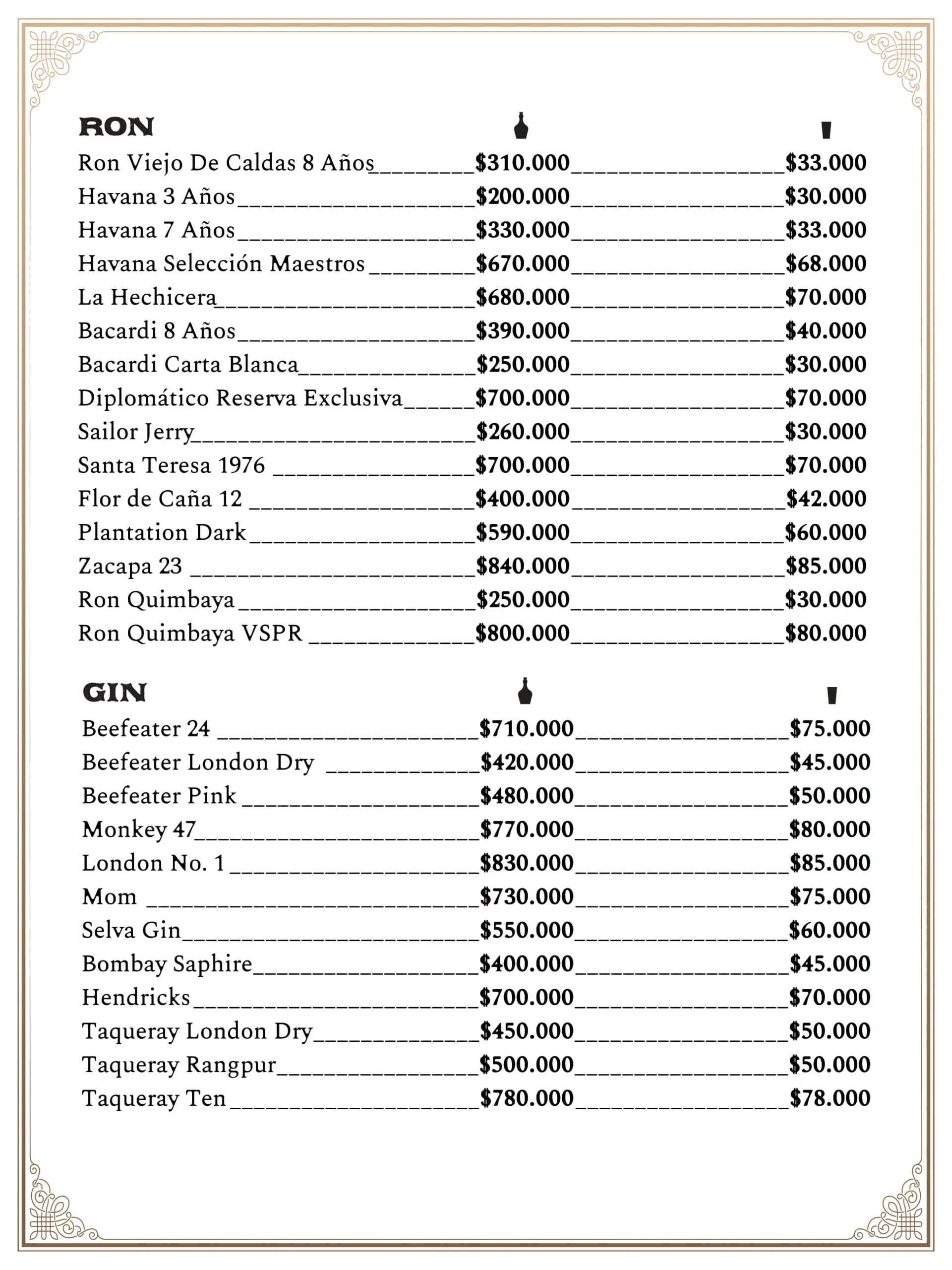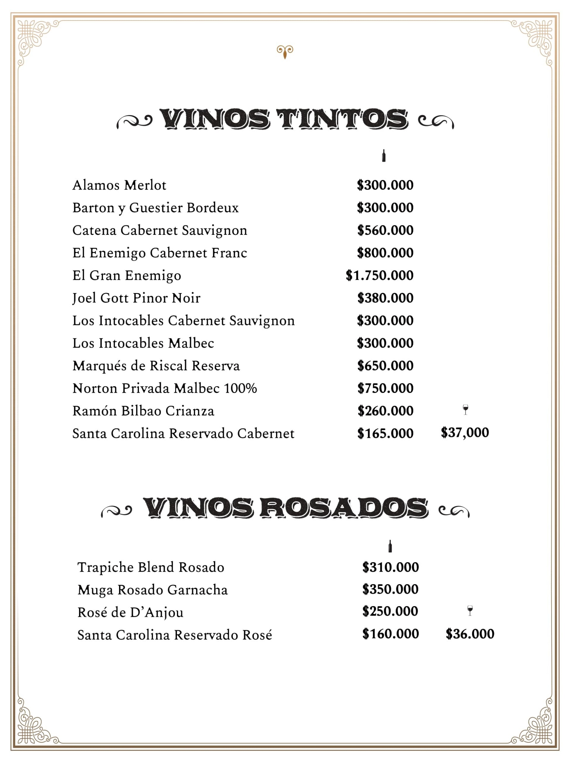 Spanish bar menu